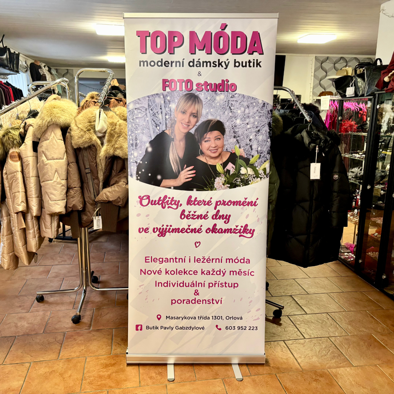 Kreativní grafický design a tisk prezentačního roll-upu – profesionální zpracování reklamního banneru pro podporu značky a vizuální prezentaci.