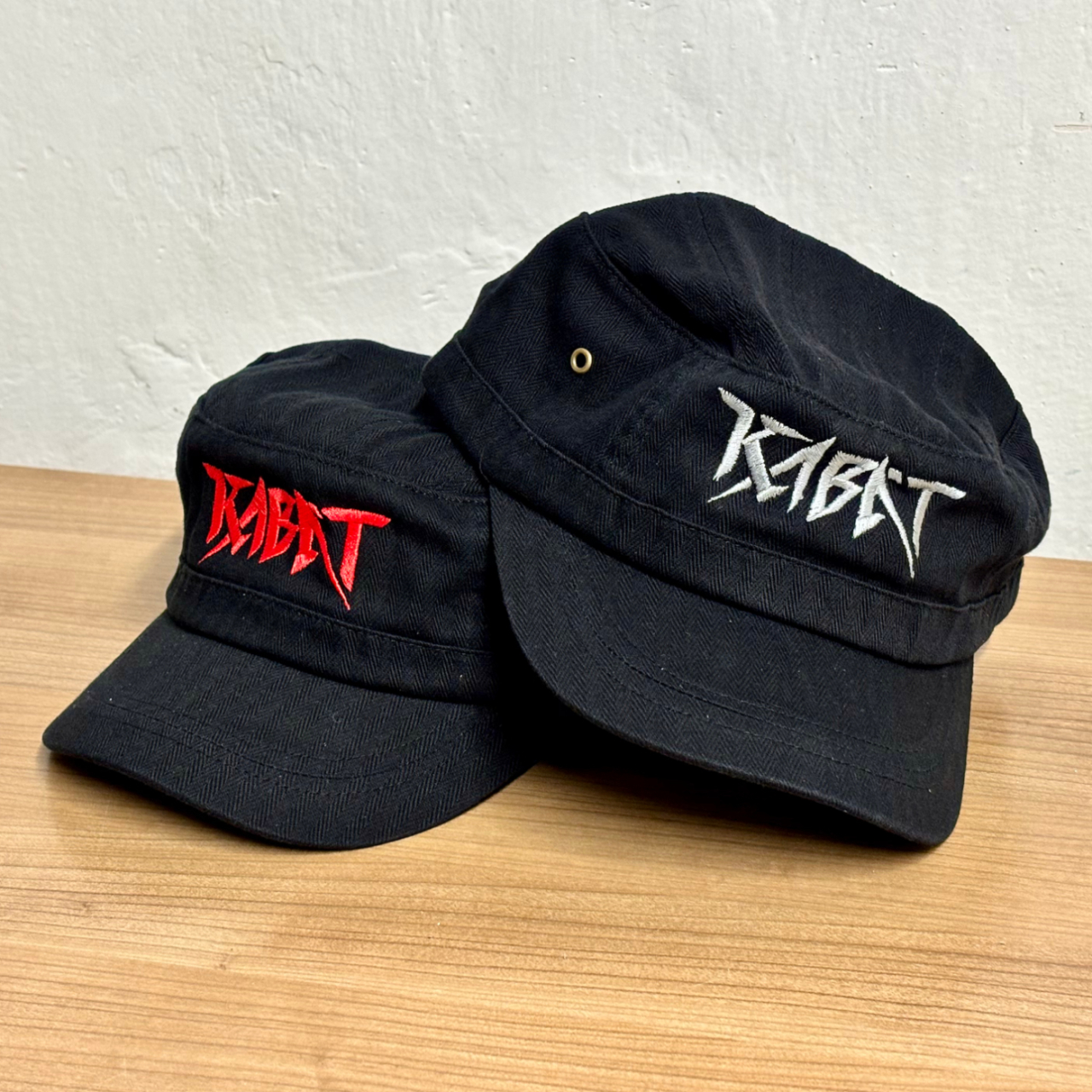 Kšiltovky s logem kapely Kabát vyrobené na zakázku – reklamní textil a merchandising pro fanoušky, koncerty a promo akce.